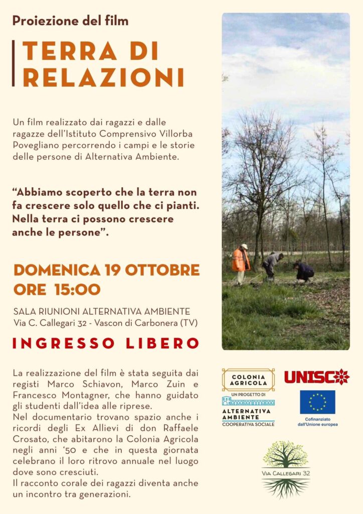 Terra di Relazioni, documentario studenti, Colonia Agricola Carbonera, evento culturale Treviso, UNISCO Roma, educazione audiovisiva, proiezione film Treviso,